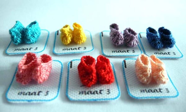 Schattige katoenen meisjes slofjes geschikt voor een popje van ong 7 cm.
