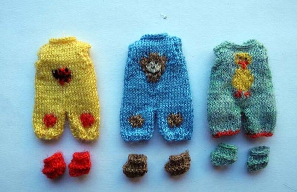 A sweet wool baby suit with a knitted lady bug. This suit fits a baby of 5-6 cm. There is a slit at the back so that the suit can be easily put on. The package includes a matching pair of slippers.