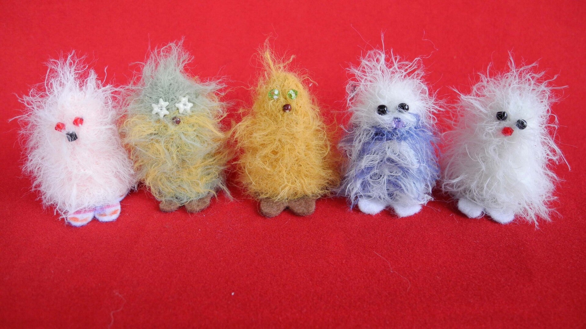 Is it a monster or a ghost? This miniature is knitted with a very nice fantasy yarn. It is so sweet and has a very high cuddly quality. Because the bottom is weighted, it can stand alone. It is only 3 cm high.