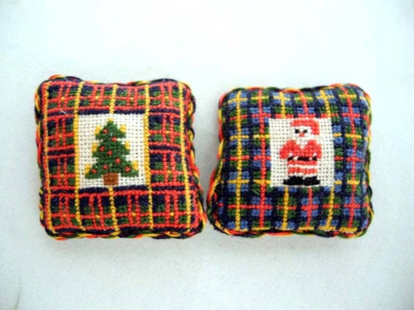 Beautiful cushion for a Christmas house. A traditional tartan on the outside and a cheerful Santa Claus in the middle. Very atmospheric. Dimensions: 3.3 X 3.3 cm.