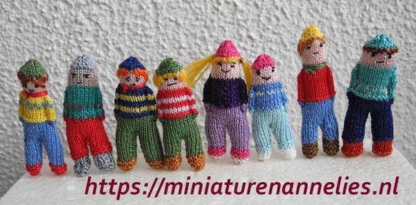 A knitted doll with a sweet face. This doll is 4 cm. It has his hands in his pockets and is nice soft to cuddle.
