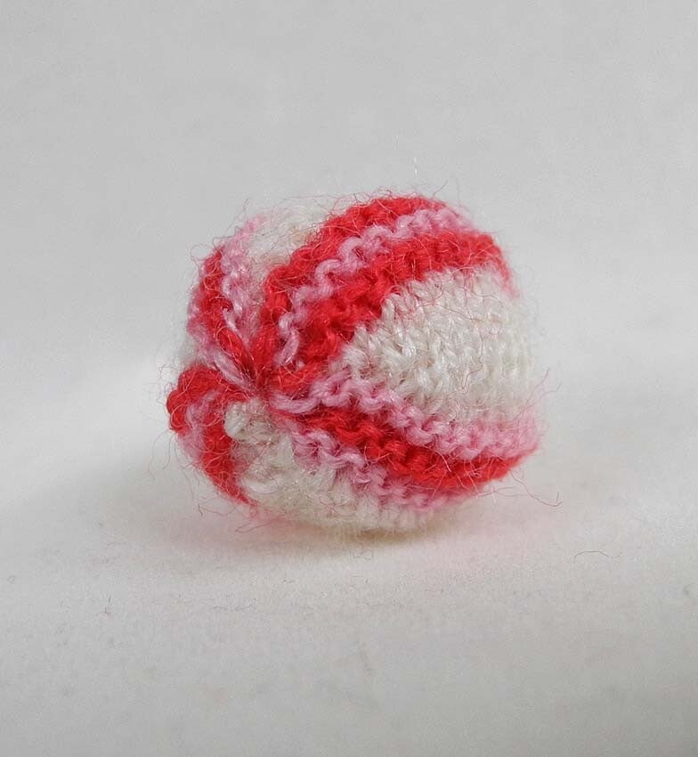 Gebreide bal, wit gestreept - Knitted ball, white striped