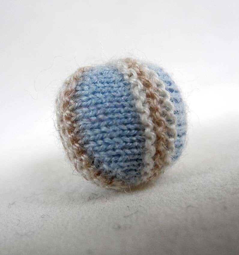 Gebreide bal,blauw gestreept - Knitted baal, blue striped
