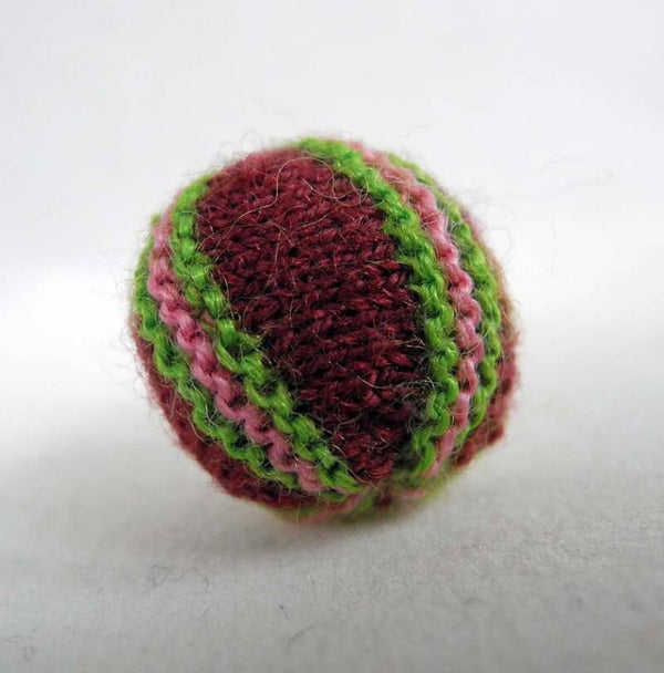 Gebreide bal, donkerrood gestreept - Knitted ball, dark red striped