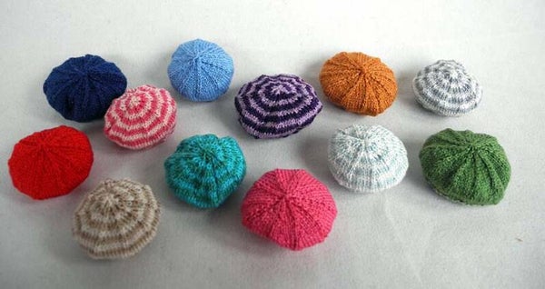 A beret always looks good and is timeless and cheerful. This one is hand-knitted from thin cotton. Diameter at the widest point is 3 cm.